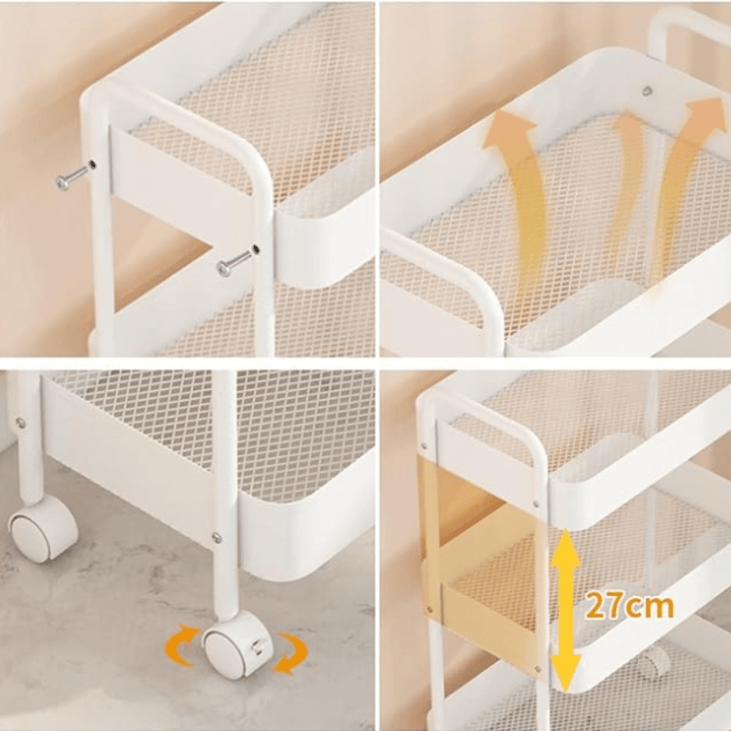 Se puede usar como carrito de cocina, organizador de baño, para librería u ordenador de juguetes, carrito de servicio. También lo podes utilizar como exhibidor u organizador de elementos de trabajo.