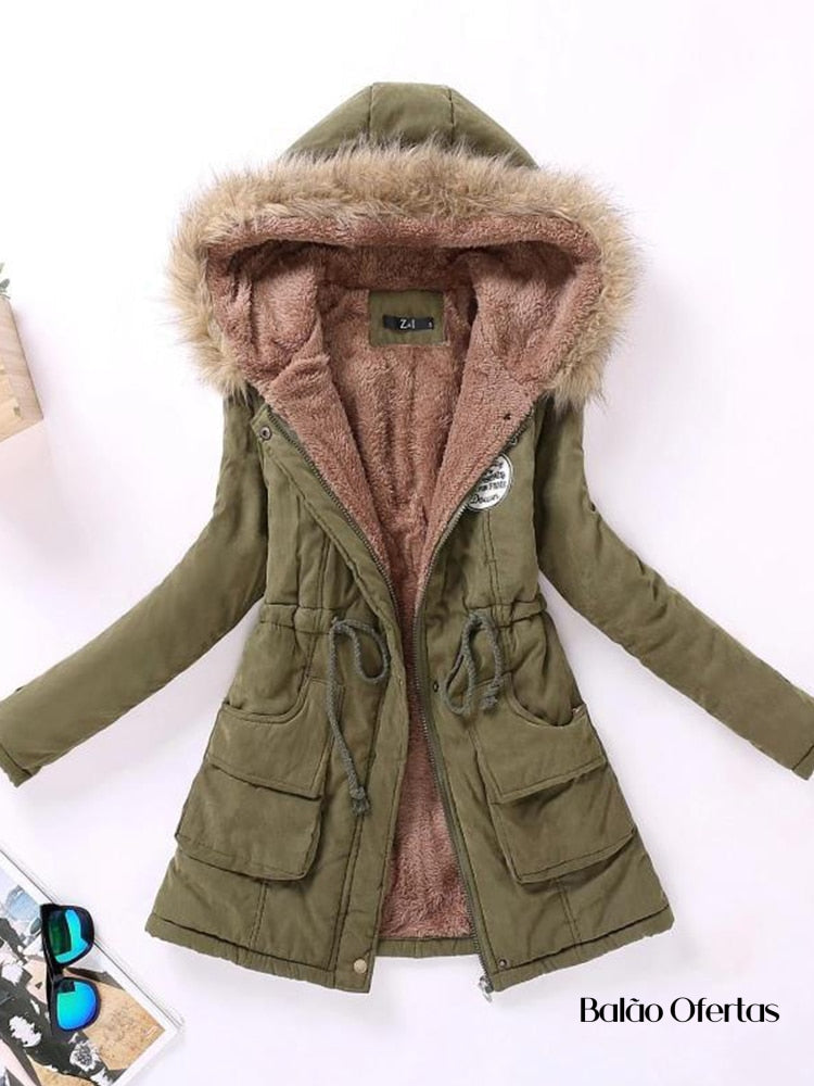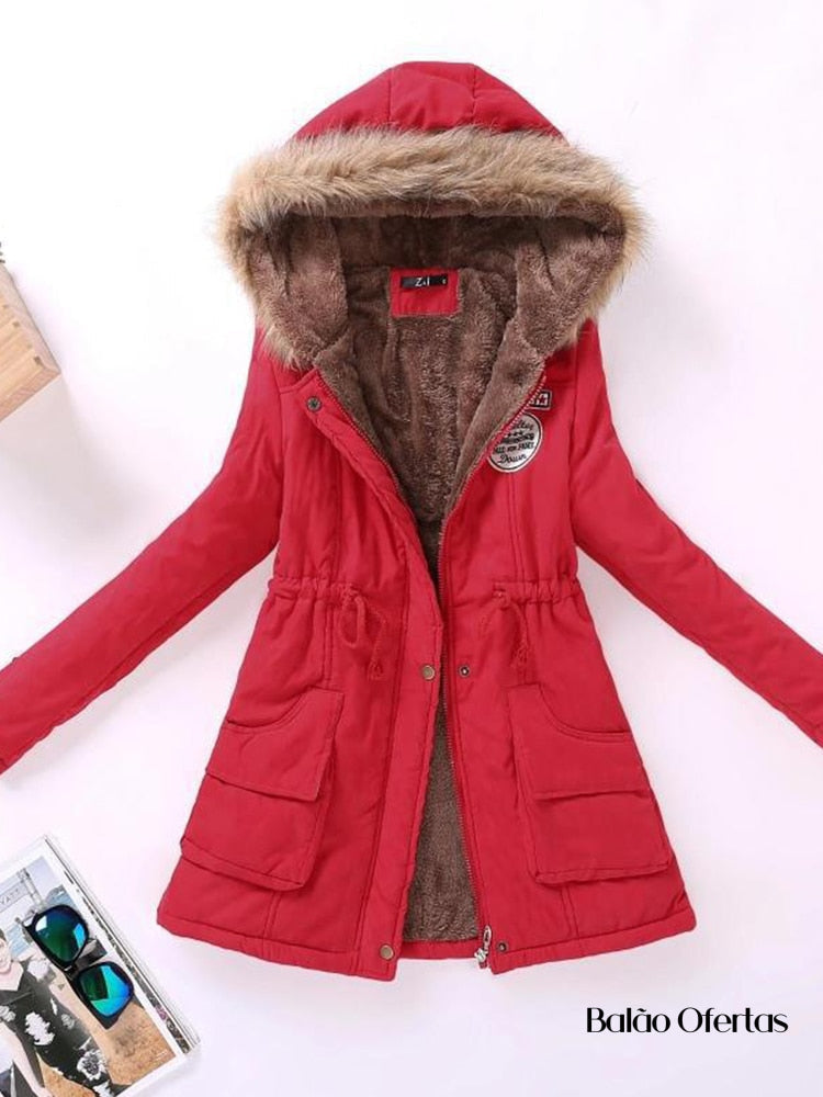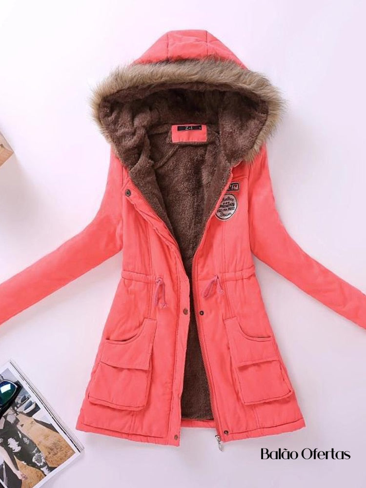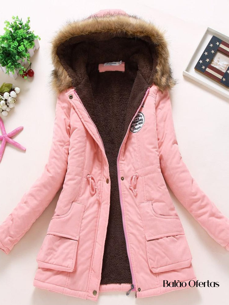 Casaco Feminino Grosso de Pelúcia com Capuz Santabella