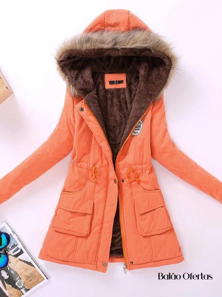 Mantenha-se aquecida e estilosa com este casaco de alta qualidade, toque macio e aveludado!