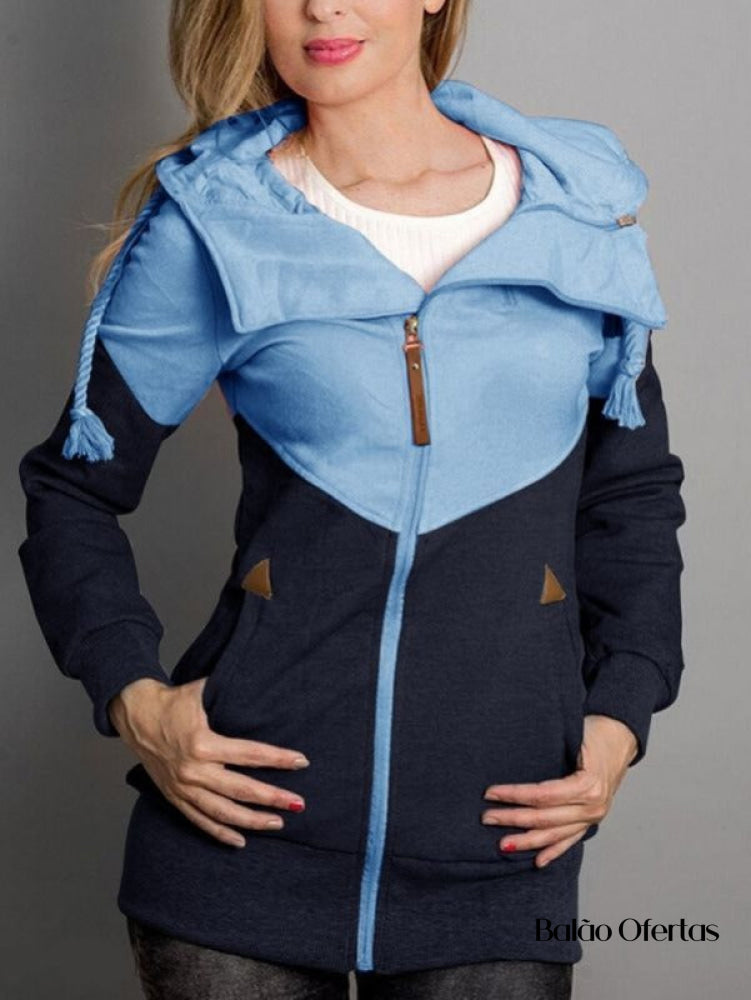 Feito com um tecido macio e agradável ao toque, esse casaco envolve você em um abraço de aconchego. O capuz ajustável proporciona uma proteção extra contra o vento e o frio, garantindo que você se mantenha aquecida e confortável em todas as ocasiões.