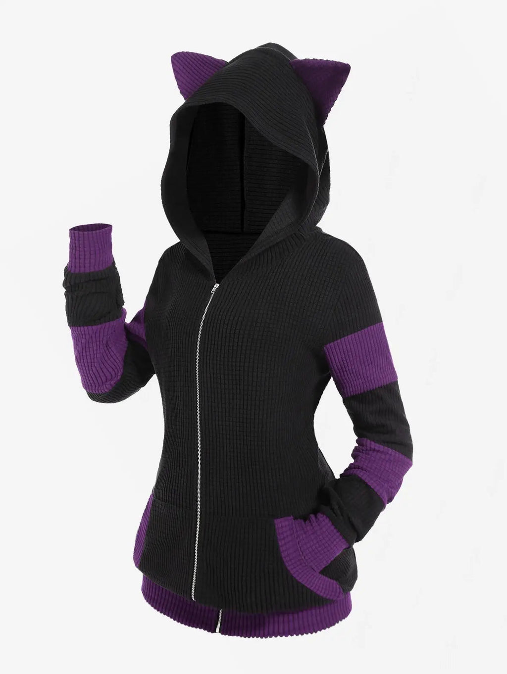 Envolva-se no conforto deste casaco feminino e adicione um toque lúdico ao seu inverno com o capuz de orelhinhas!