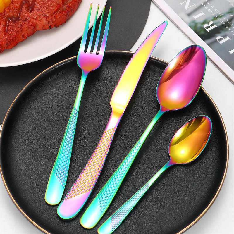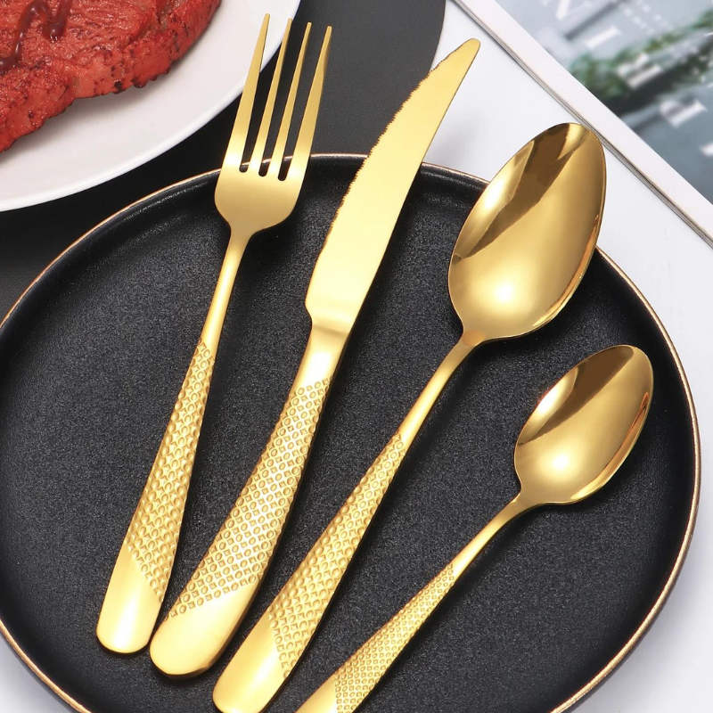- Material de Alta Qualidade: Feito de aço inoxidável, conhecido por sua resistência e durabilidade, garantindo talheres que mantêm sua aparência e funcionalidade por muito tempo.