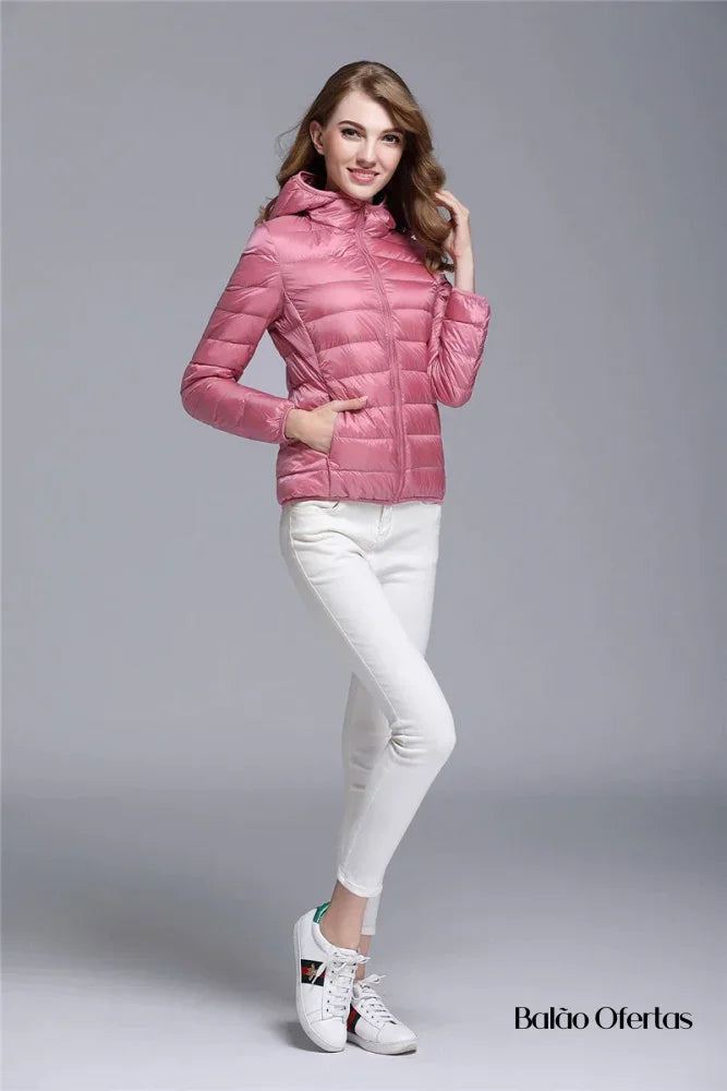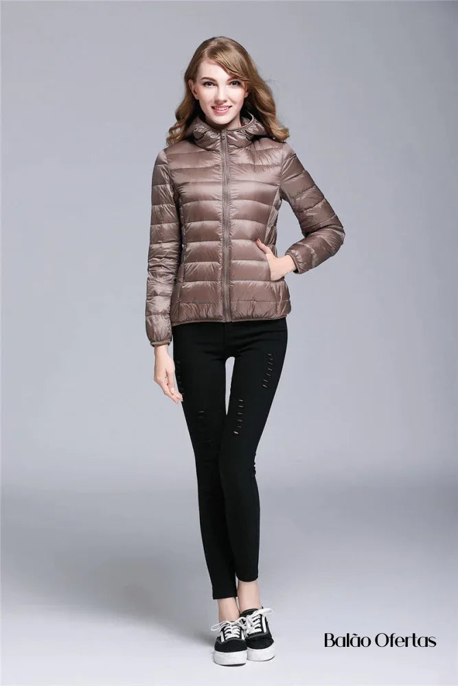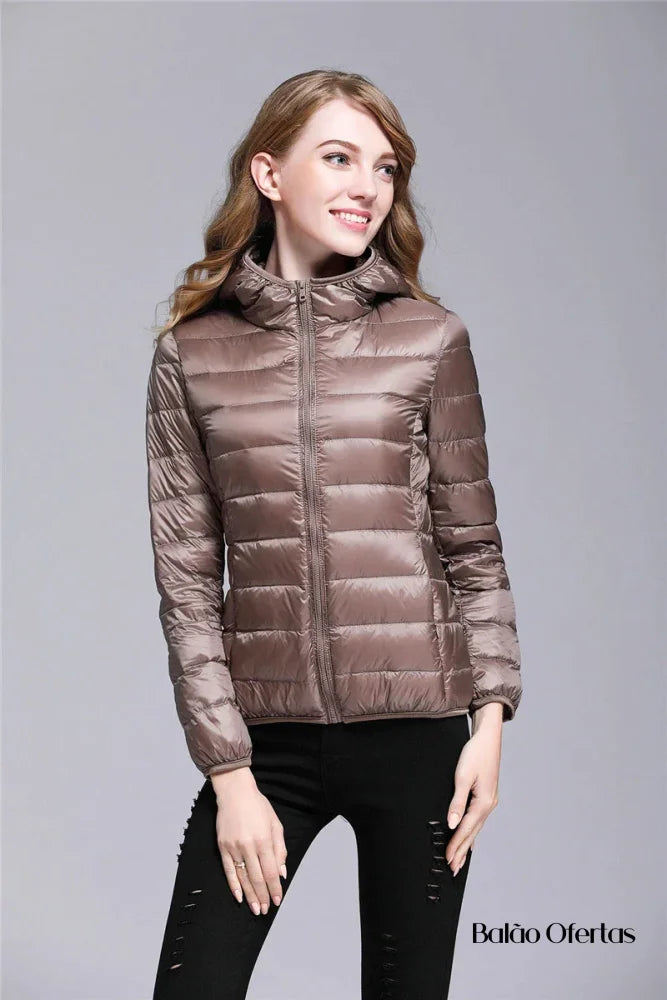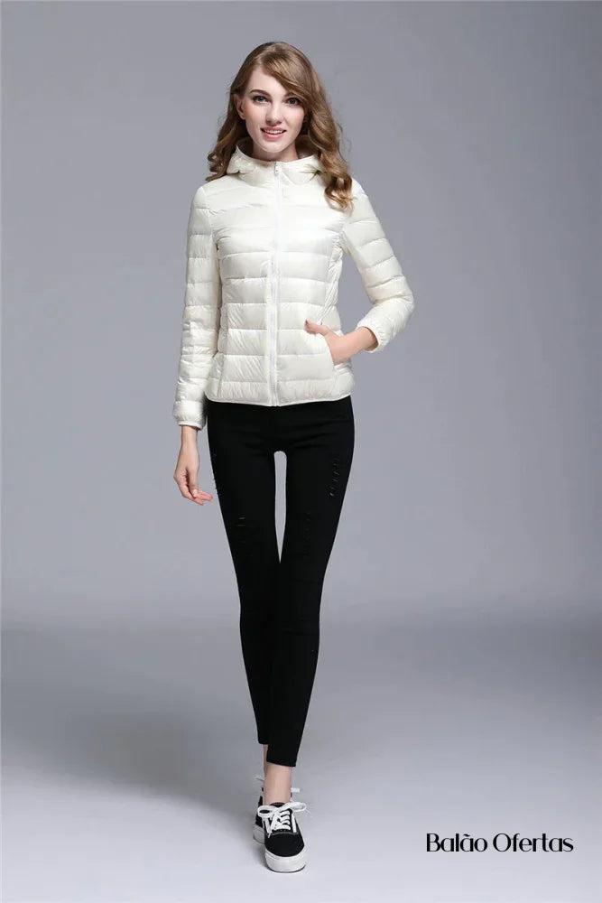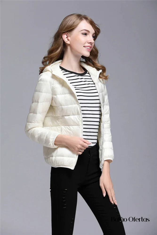 - 1x Jaqueta Puffer Feminina Básica com Capuz Annabele